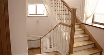 Установка лестницы с отделкой и перилами