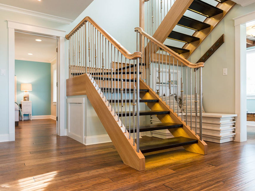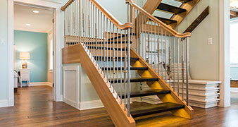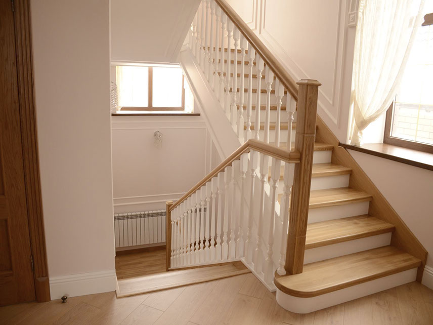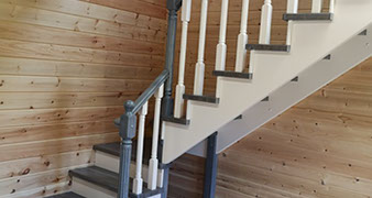 Установка лестницы с отделкой и перилами